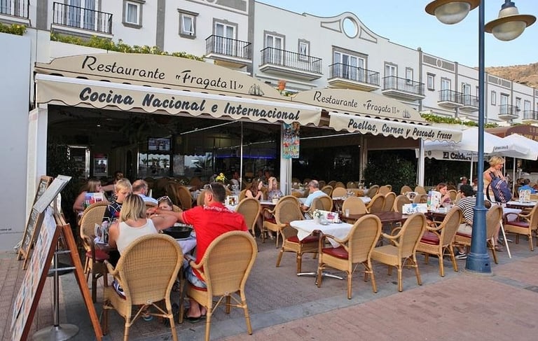 Fragata II se encuentra directamente en el paseo marítimo de Playa de Mogán y es conocido por su pescado fresco, tapas y especialidades mediterráneas. Las vistas al mar, la atmósfera relajada y los sabores auténticos lo convierten en uno de los restaurantes más populares de la zona.